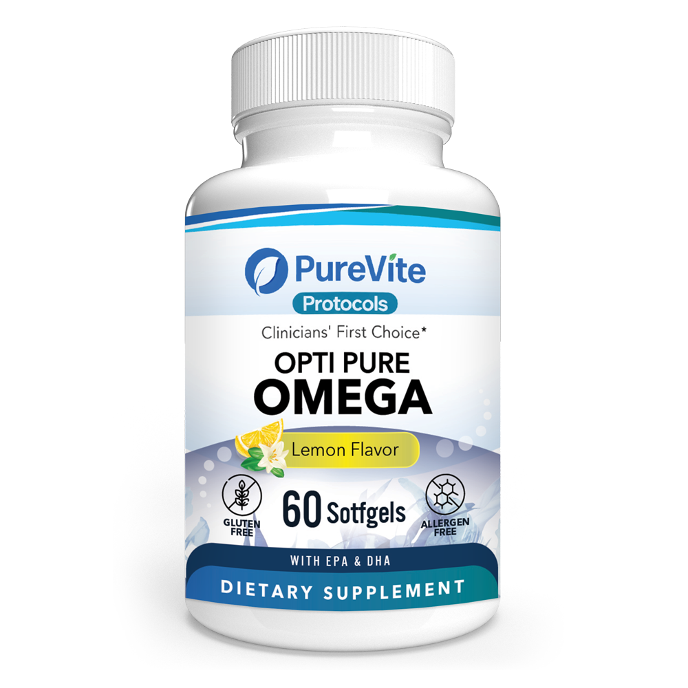 Opti Pure Omega is a clinically effective, high-potency omega-3 formula delivering concentrated EPA and DHA from premium fish oil to support cardiovascular health and help manage inflammation.* EPA and DHA are essential fatty acids shown to support heart function, healthy triglyceride levels, and overall inflammatory balance.* Regular intake of EPA, DHA, and fish oil has been associated with improvements in multiple risk factors linked to cardiovascular disease.*